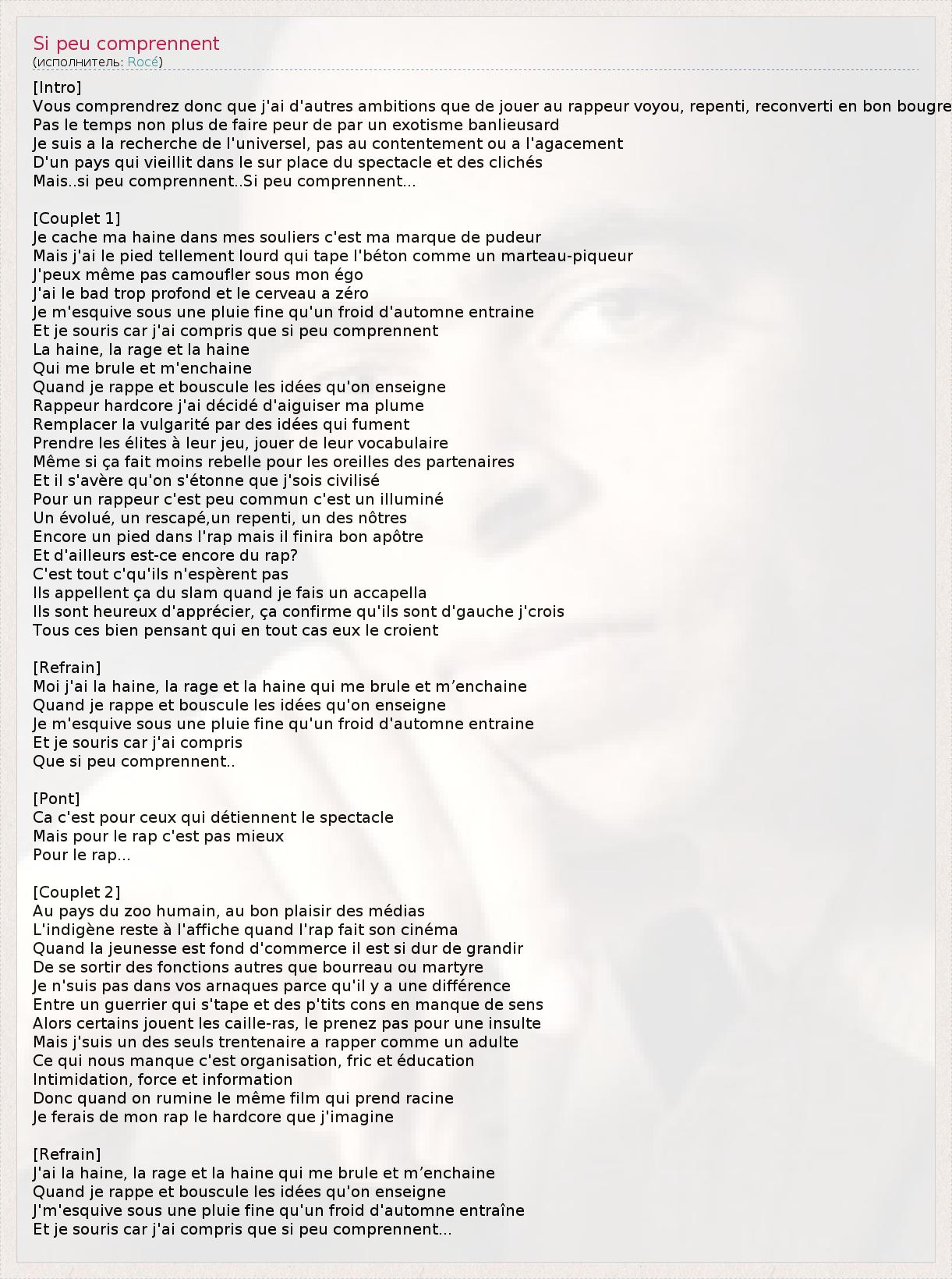 А как ты думаешь, о чем песня "Si peu comprennent" ?