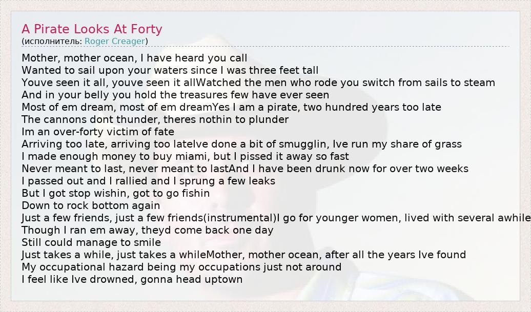 А как ты думаешь, о чем песня "A Pirate Looks At Forty" ?