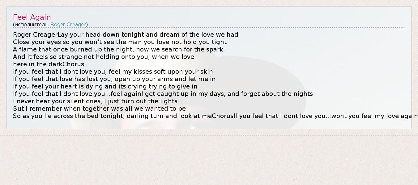 So as you lie across the bed tonight, darling turn and look at meChorusIf you feel that I dont love you...wont you feel my love again