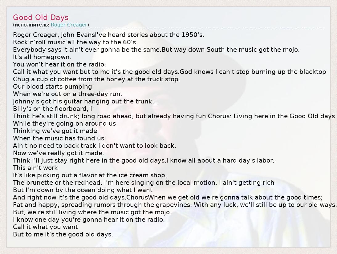 А как ты думаешь, о чем песня "Good Old Days" ?