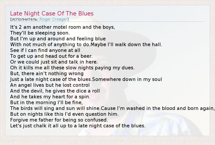 А как ты думаешь, о чем песня "Late Night Case Of The Blues" ?