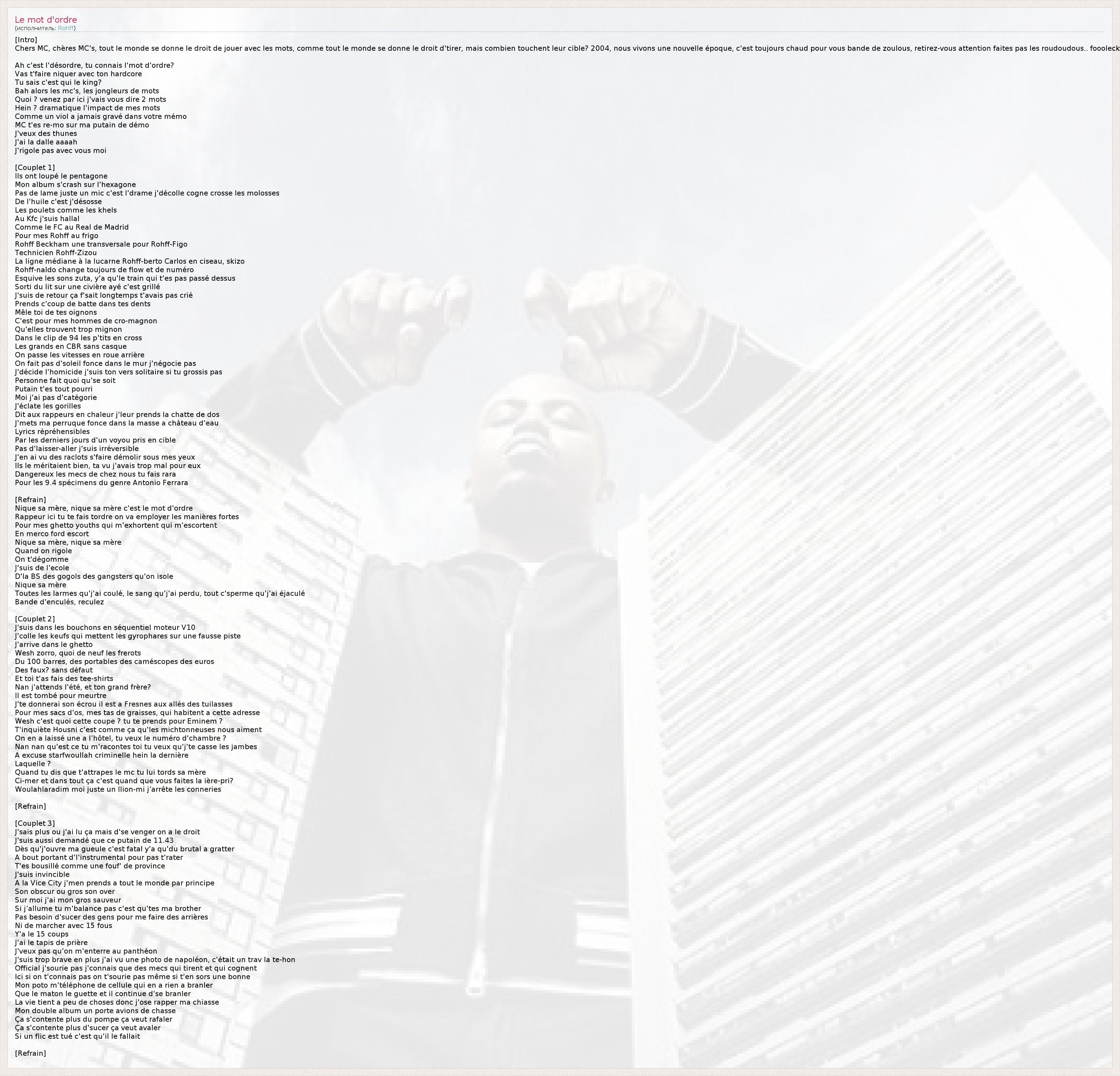 Ah c'est l'désordre, tu connais l'mot d'ordre?