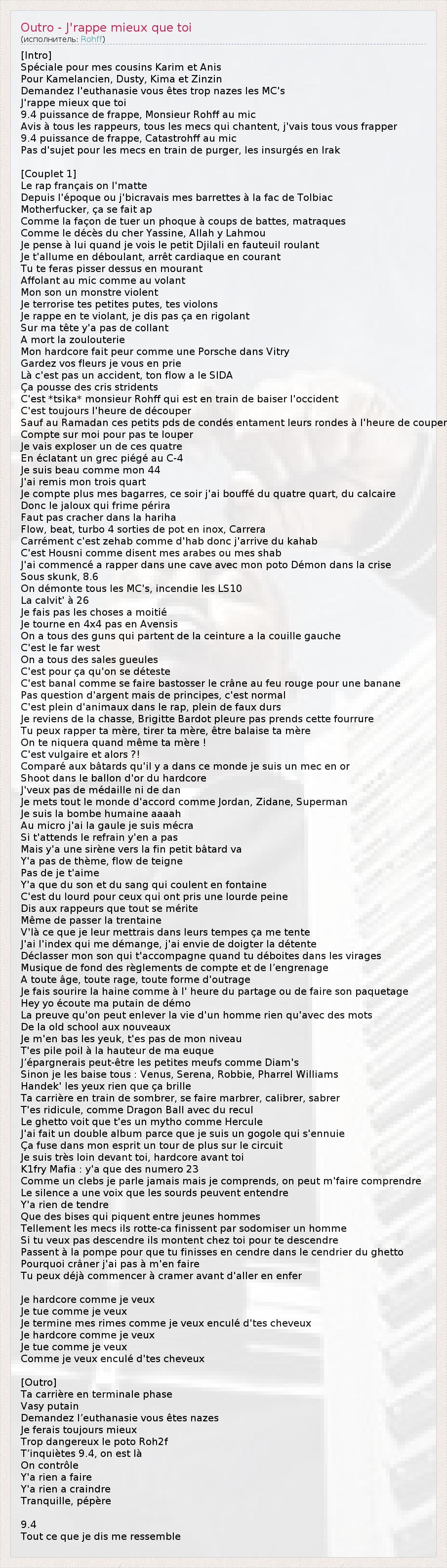 ГлавнаяИсполнителиRohffOutro - J'rappe mieux que toi