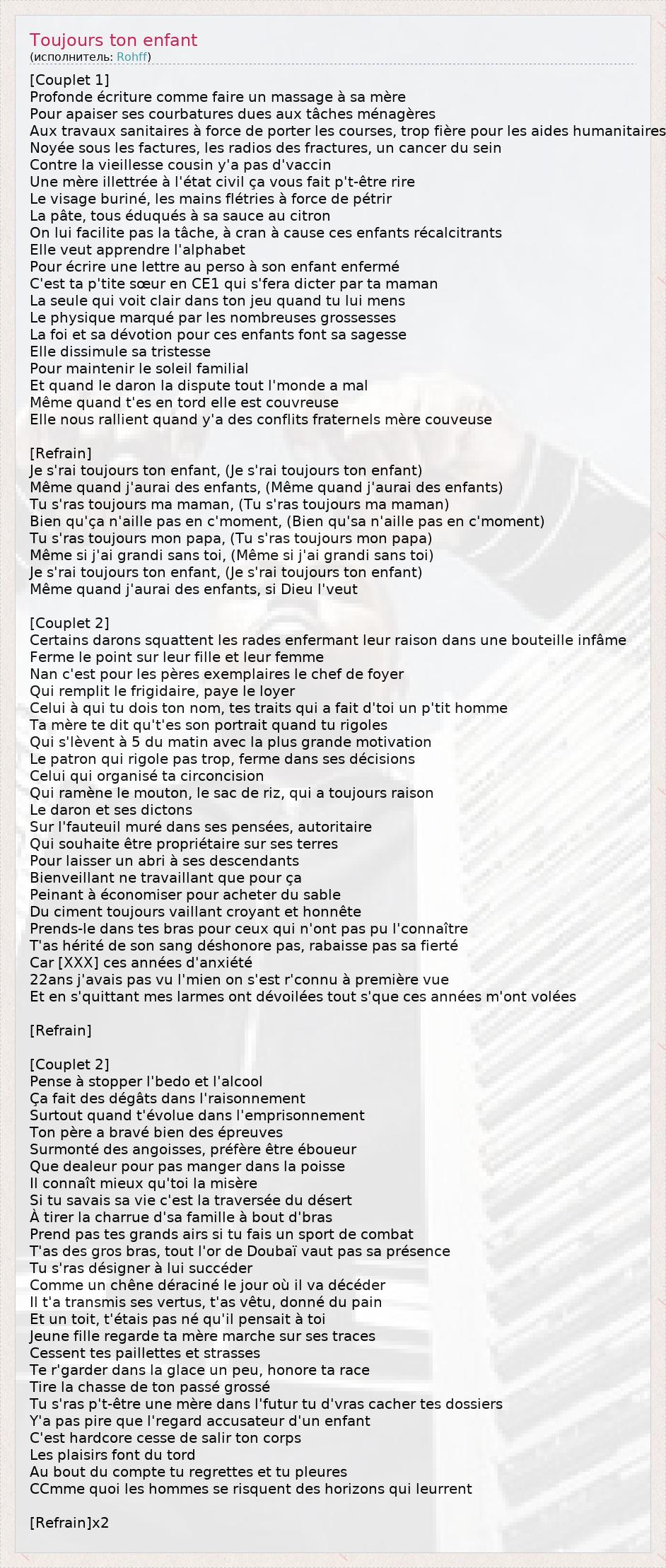 ГлавнаяИсполнителиRohffToujours ton enfant