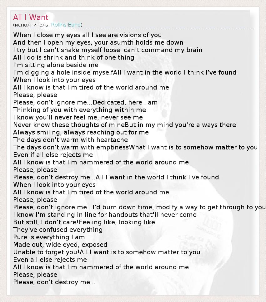 А как ты думаешь, о чем песня "All I Want" ?