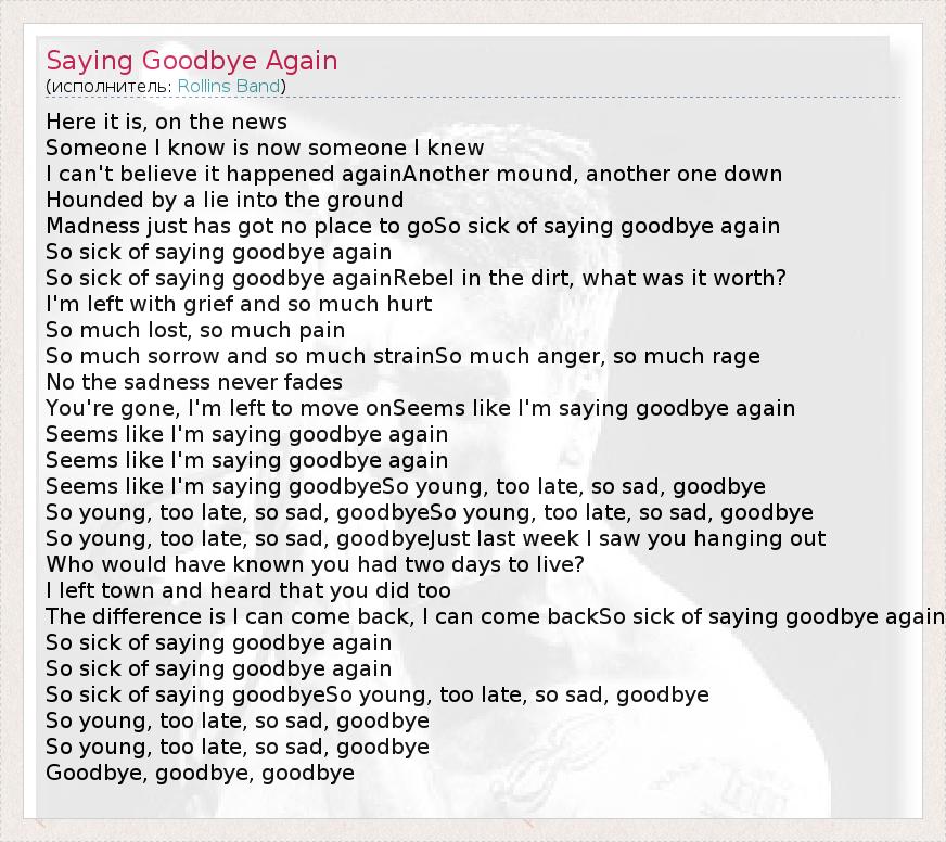 А как ты думаешь, о чем песня "Saying Goodbye Again" ?