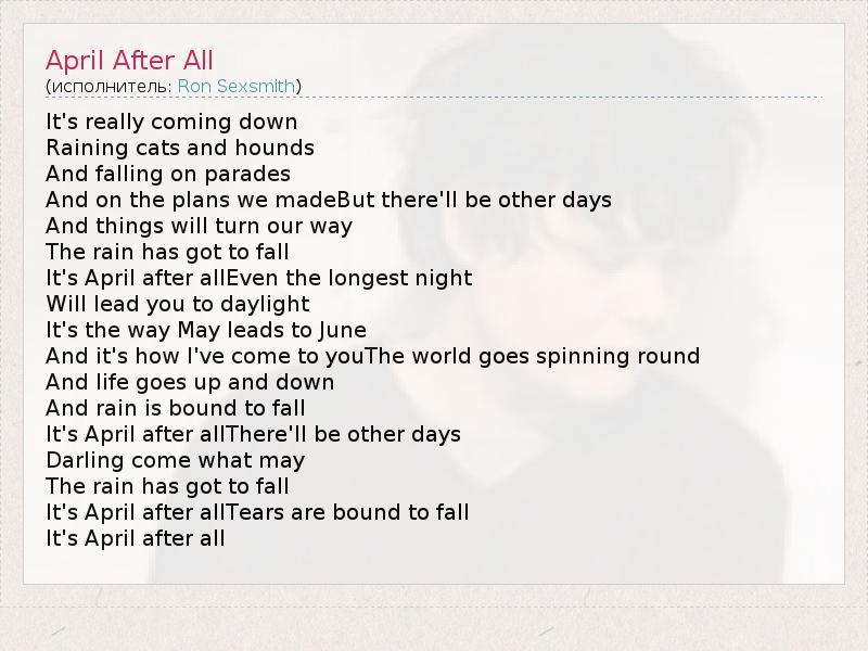 Это интересно:Рональд Секссмит (родился 8 января 1964 г.) является канадским певцом из Онтарио, в настоящее время базируется в Торонто . Он начал свою собственную карьеру, когда ему было четырнадцать лет, и выпустили первые записи собственного материала семь лет спустя, в 1985 году. Некоторые из тех исполнителей, которые вдохновили Секссмита, Пол Маккартни , Элвис Костелло , Рэй Дэвис и Джон Хайатт , в настоящее... продолжение