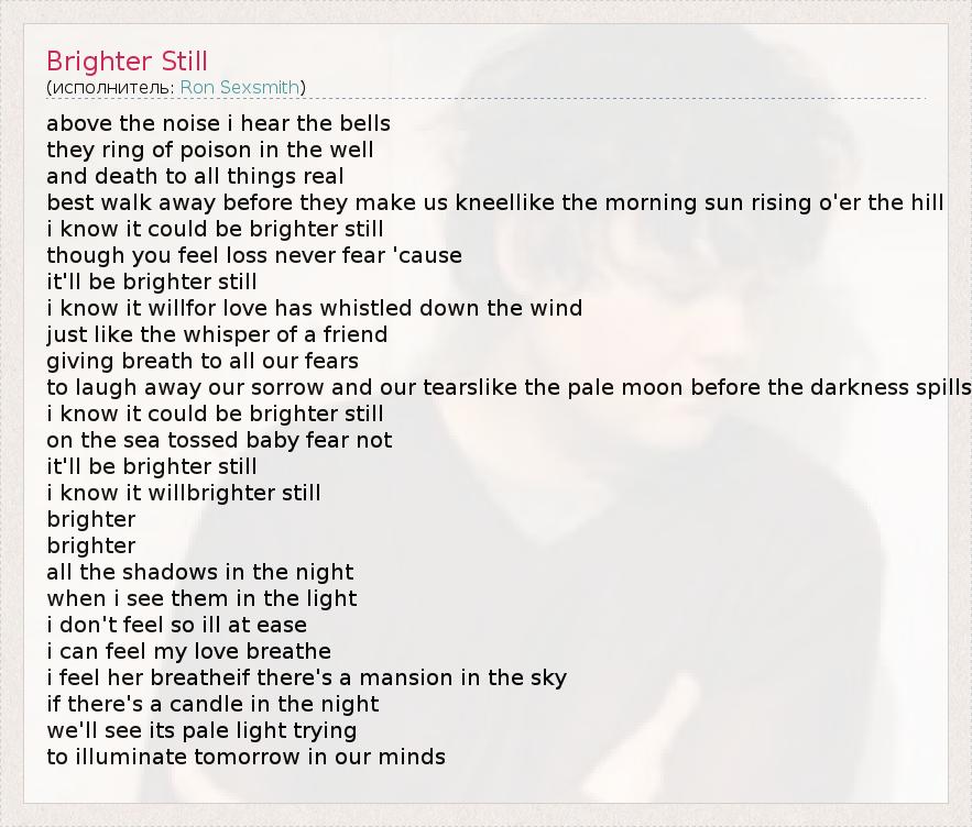 А как ты думаешь, о чем песня "Brighter Still" ?