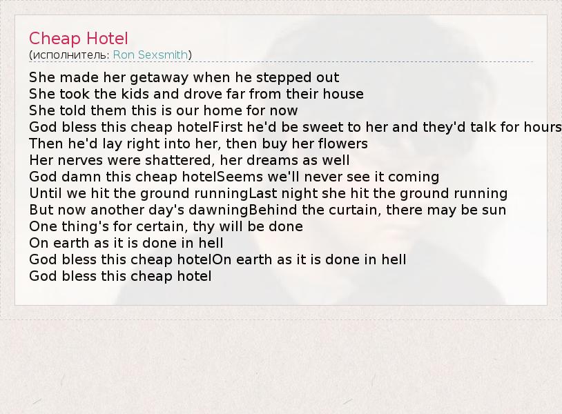 А как ты думаешь, о чем песня "Cheap Hotel" ?