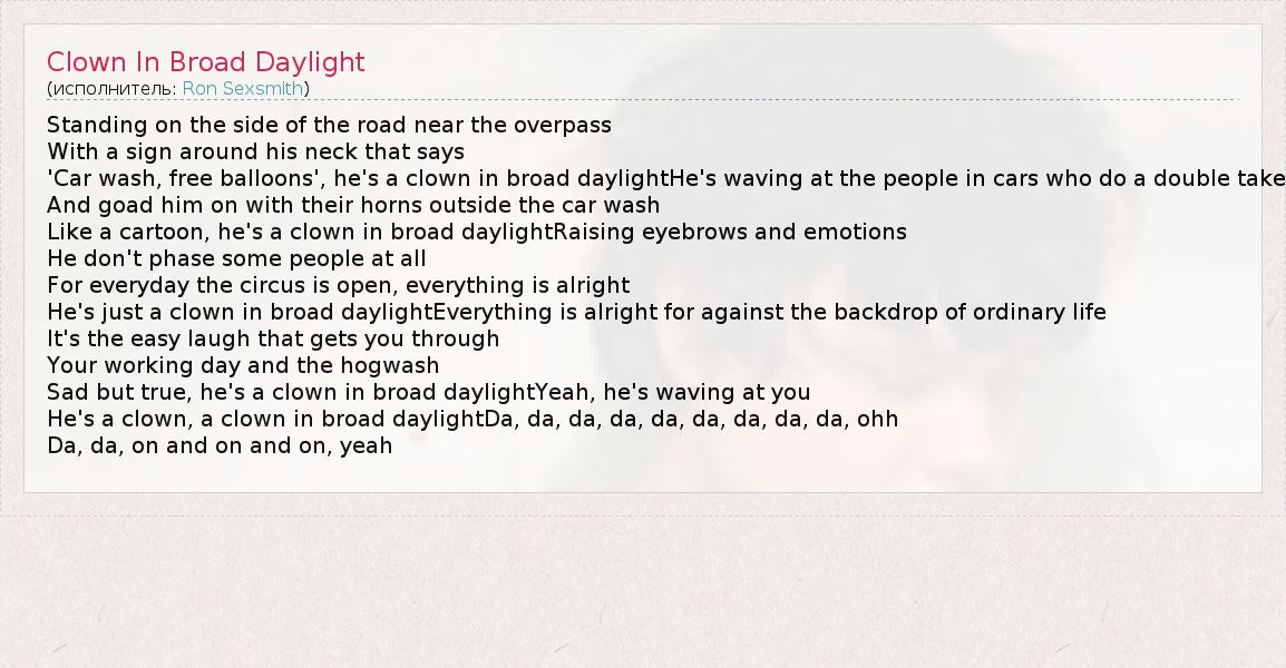 А как ты думаешь, о чем песня "Clown In Broad Daylight" ?