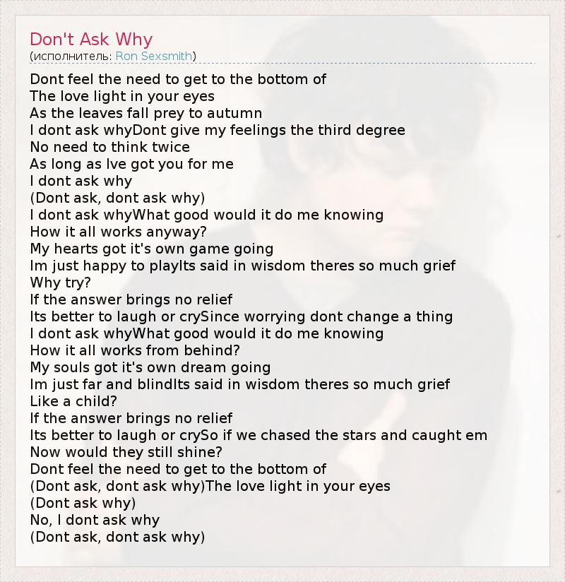 А как ты думаешь, о чем песня "Don't Ask Why" ?