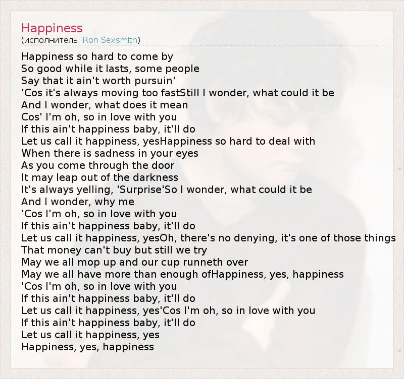 Let us call it happiness, yesOh, there's no denying, it's one of those things
