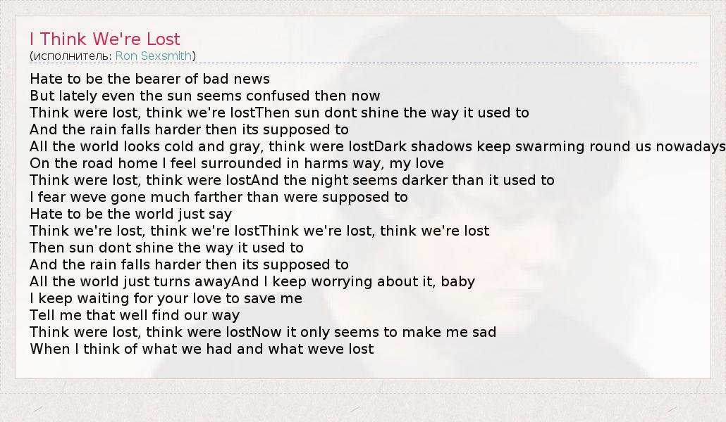 А как ты думаешь, о чем песня "I Think We're Lost" ?
