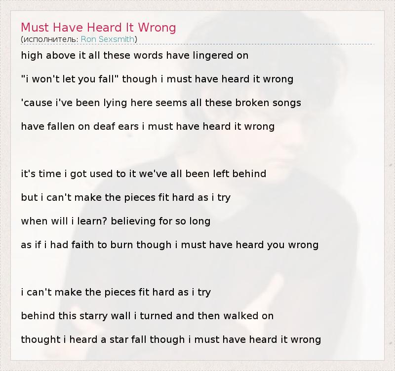 А как ты думаешь, о чем песня "Must Have Heard It Wrong" ?