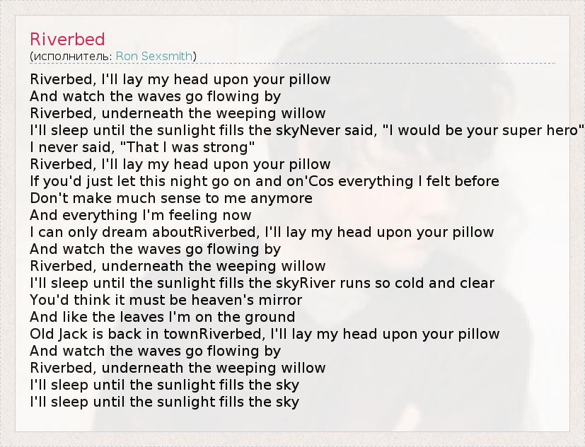 I can only dream aboutRiverbed, I'll lay my head upon your pillow