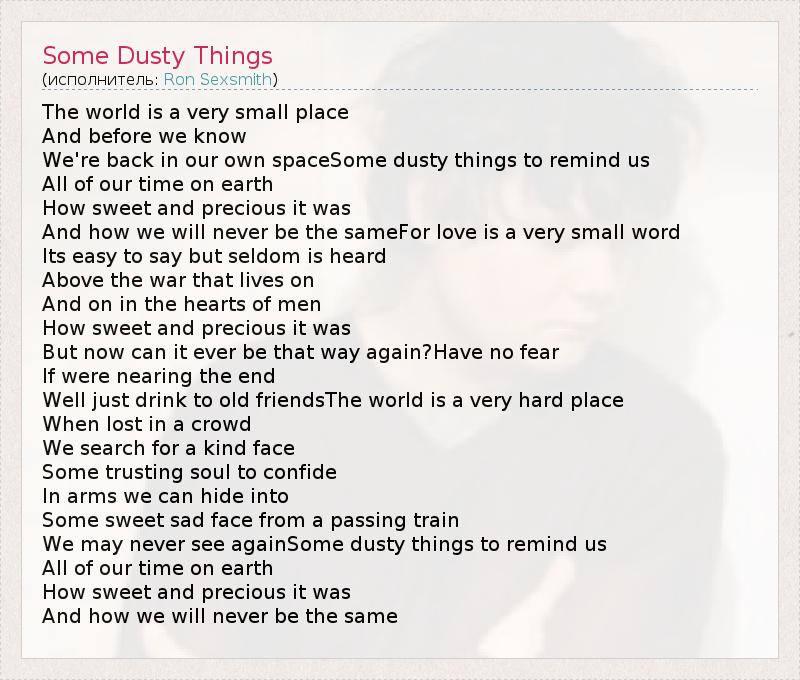 А как ты думаешь, о чем песня "Some Dusty Things" ?