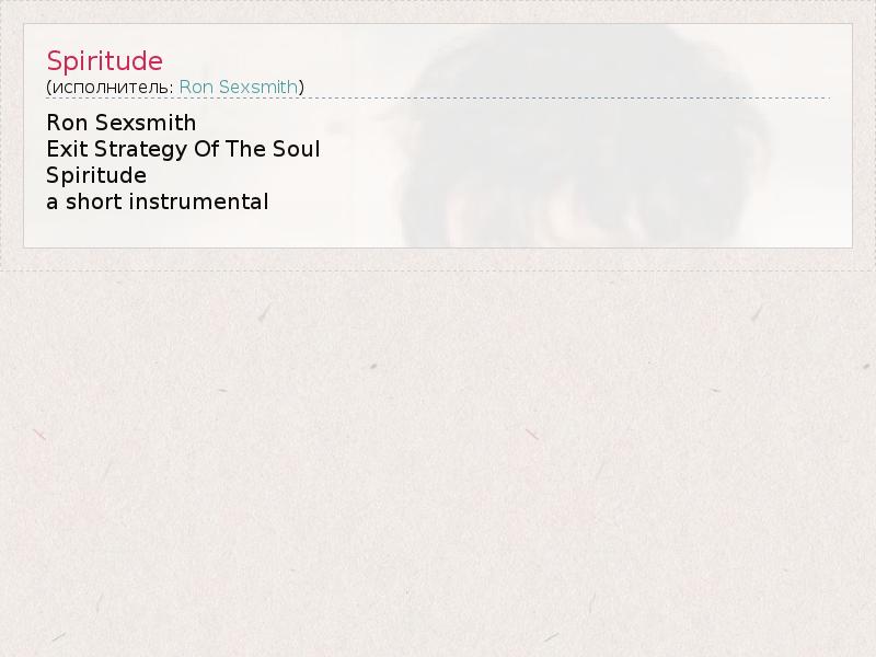 Это интересно:Рональд Секссмит (родился 8 января 1964 г.) является канадским певцом из Онтарио, в настоящее время базируется в Торонто . Он начал свою собственную карьеру, когда ему было четырнадцать лет, и выпустили первые записи собственного материала семь лет спустя, в 1985 году. Некоторые из тех исполнителей, которые вдохновили Секссмита, Пол Маккартни , Элвис Костелло , Рэй Дэвис и Джон Хайатт , в настоящее... продолжение
