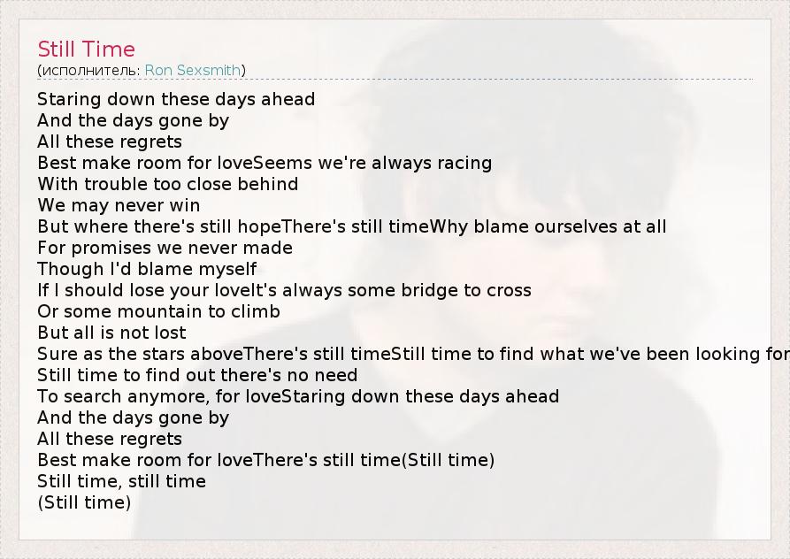 А как ты думаешь, о чем песня "Still Time" ?