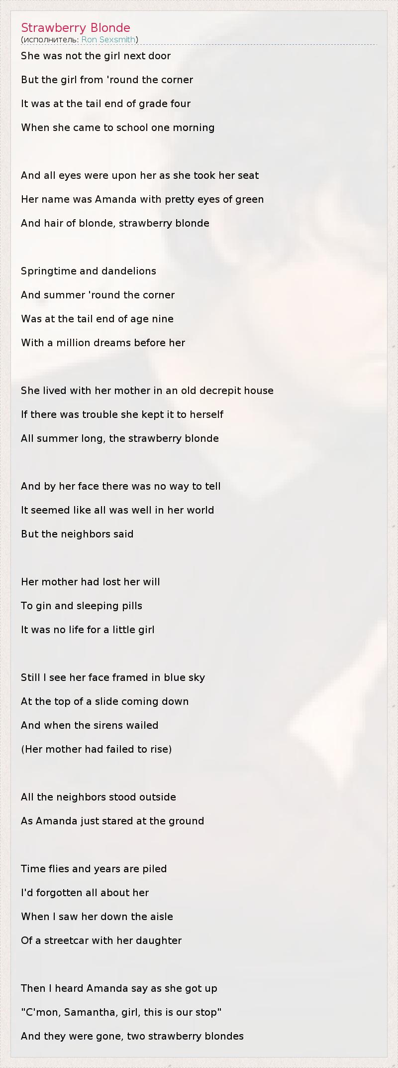 А как ты думаешь, о чем песня "Strawberry Blonde" ?