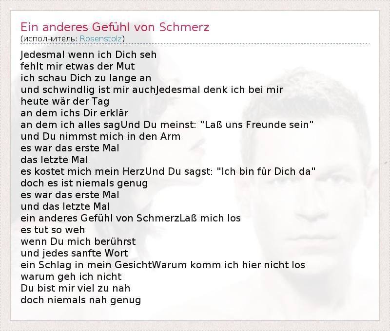 А как ты думаешь, о чем песня "Ein anderes Gefühl von Schmerz" ?
