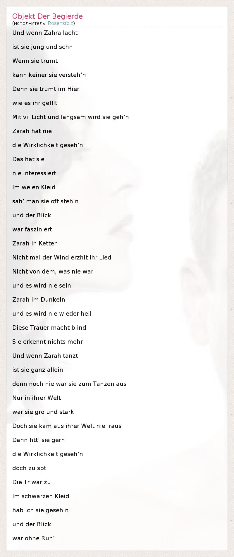 А как ты думаешь, о чем песня "Objekt Der Begierde" ?