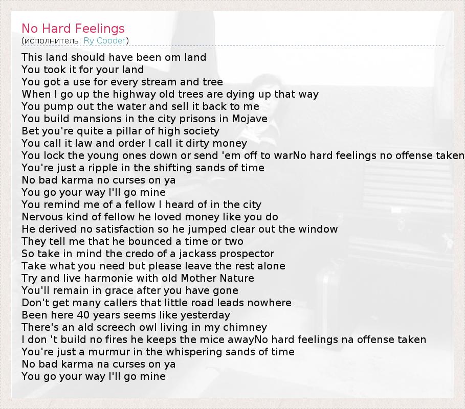 А как ты думаешь, о чем песня "No Hard Feelings" ?