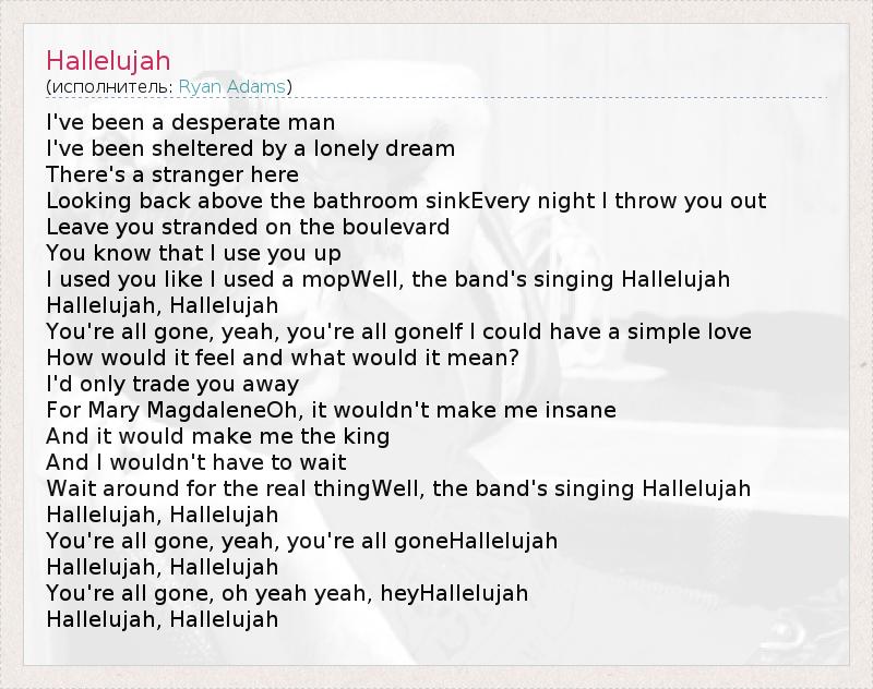 А как ты думаешь, о чем песня "Hallelujah" ?