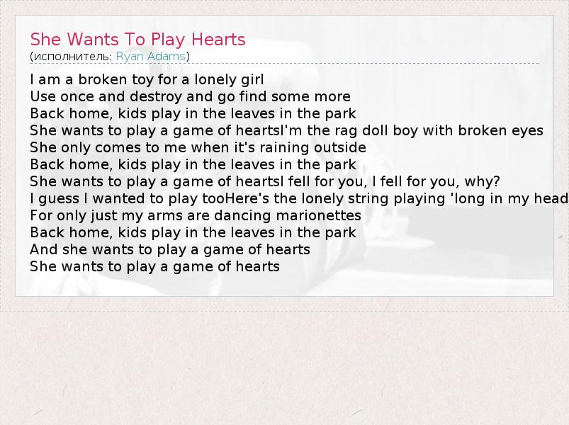 А как ты думаешь, о чем песня "She Wants To Play Hearts" ?
