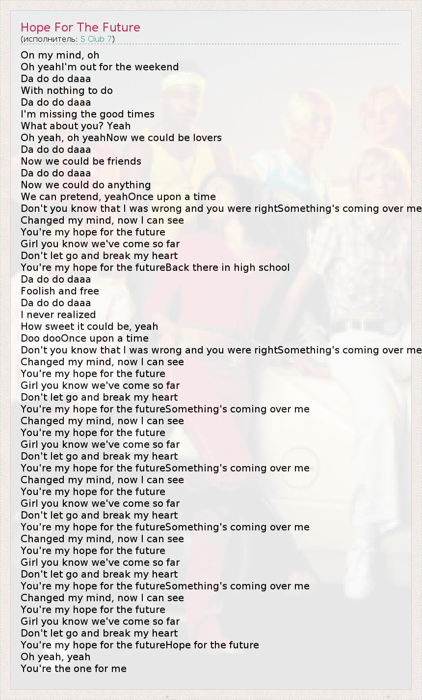 А как ты думаешь, о чем песня "Hope For The Future" ?