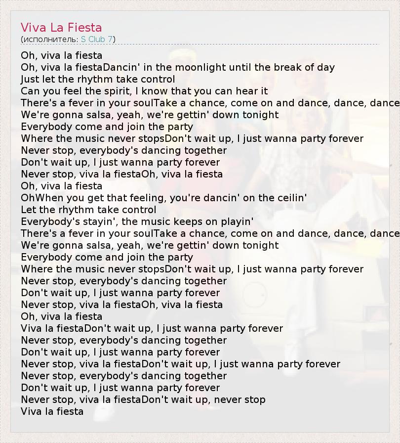Never stop, viva la fiestaDon't wait up, never stop