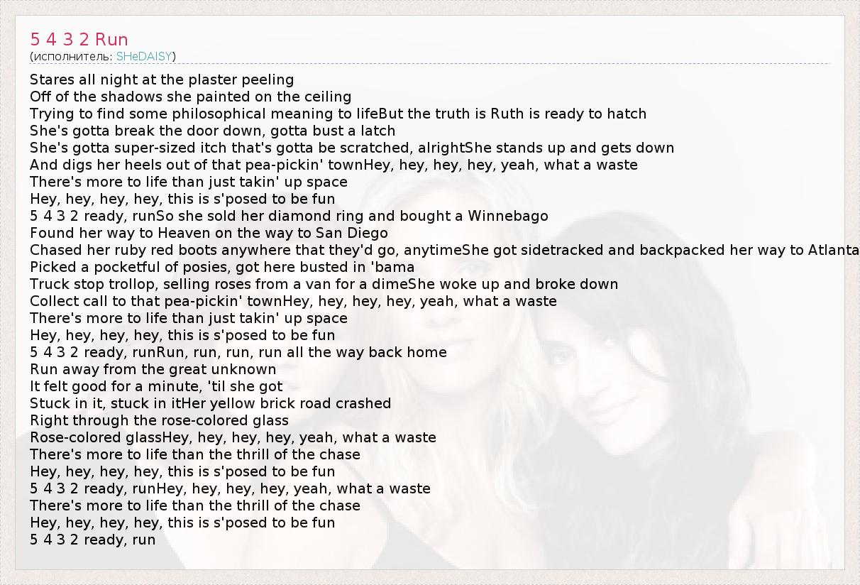 А как ты думаешь, о чем песня "5 4 3 2 Run" ?