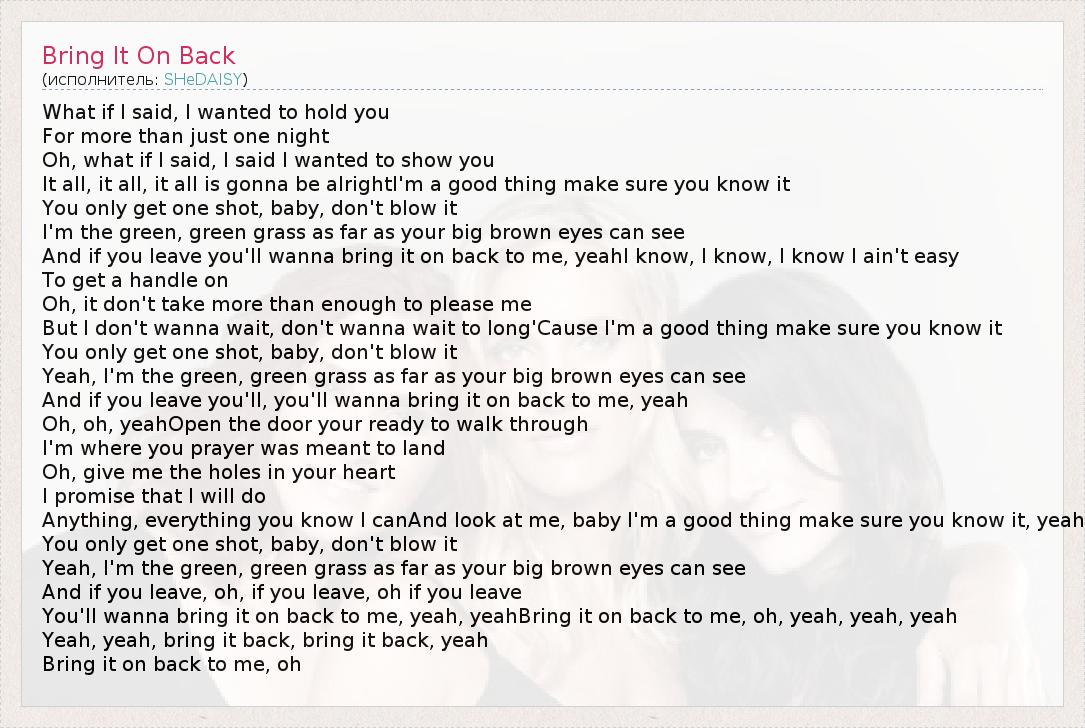 А как ты думаешь, о чем песня "Bring It On Back" ?