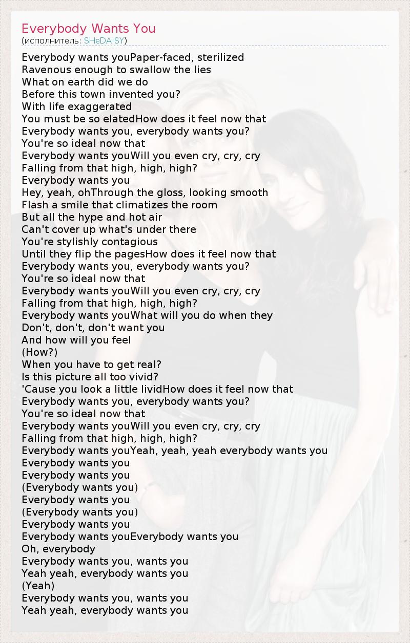 А как ты думаешь, о чем песня "Everybody Wants You" ?