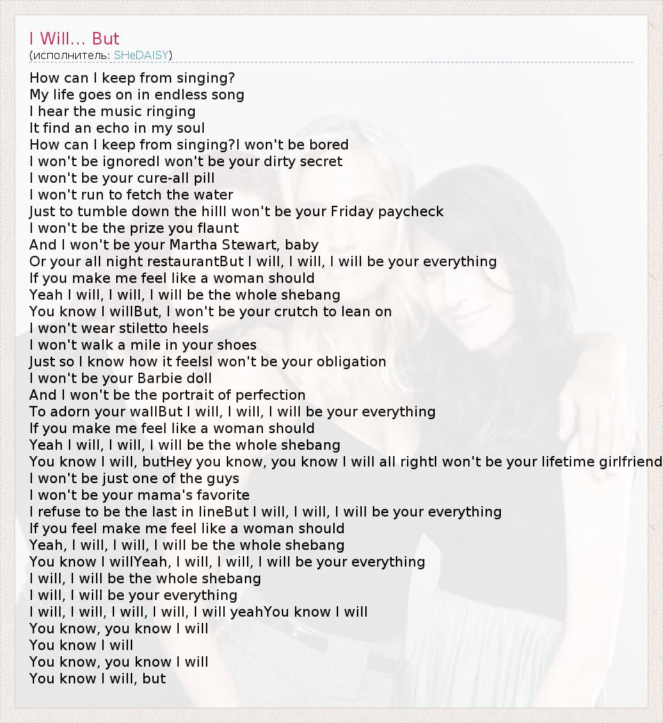 You know I will, butHey you know, you know I will all rightI won't be your lifetime girlfriend