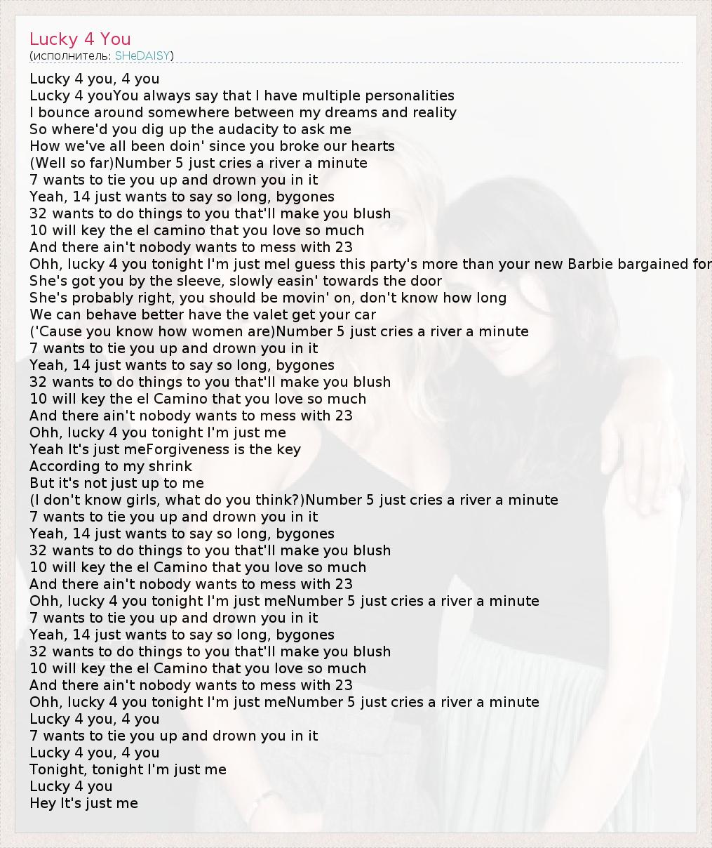 А как ты думаешь, о чем песня "Lucky 4 You" ?