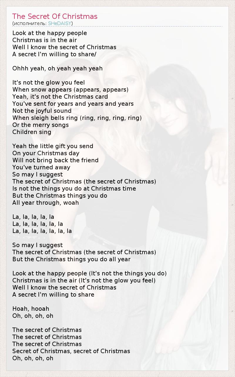 А как ты думаешь, о чем песня "The Secret Of Christmas" ?