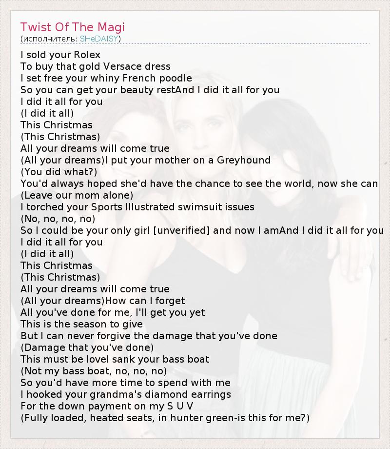 А как ты думаешь, о чем песня "Twist Of The Magi" ?