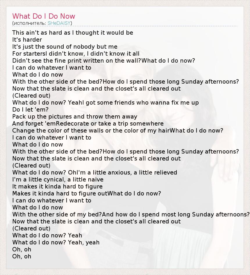 А как ты думаешь, о чем песня "What Do I Do Now" ?