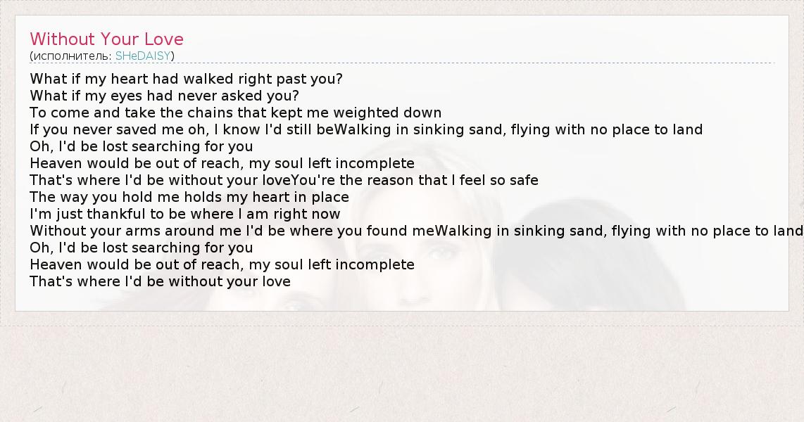 А как ты думаешь, о чем песня "Without Your Love" ?