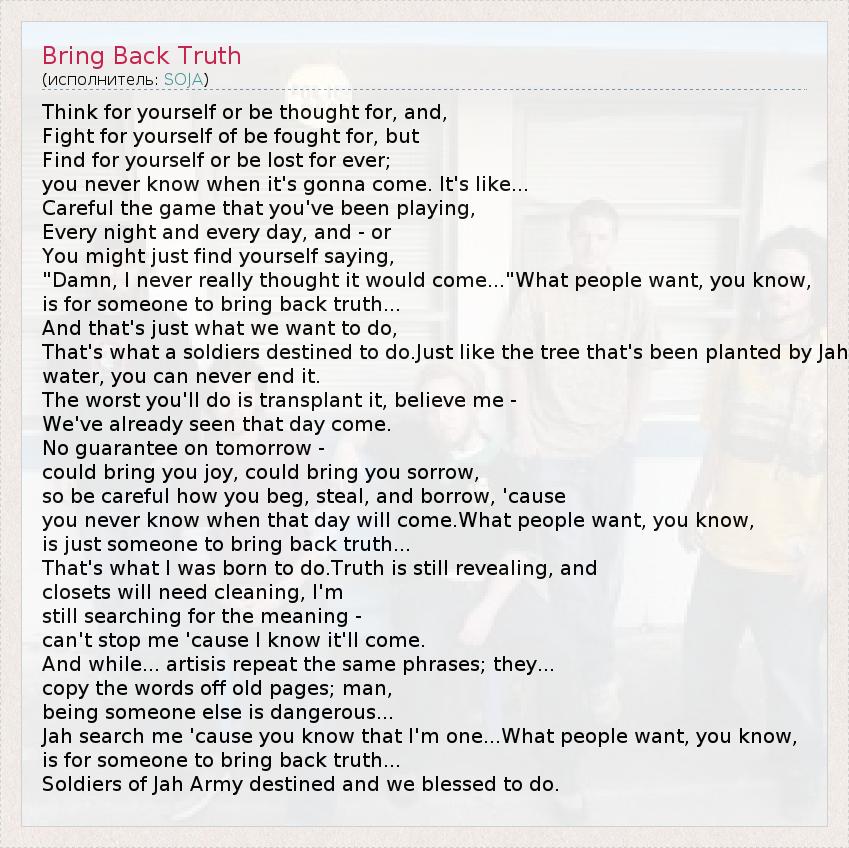 А как ты думаешь, о чем песня "Bring Back Truth" ?