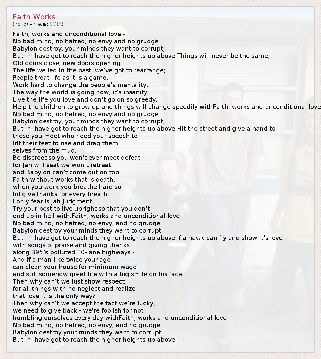 А как ты думаешь, о чем песня "Faith Works" ?