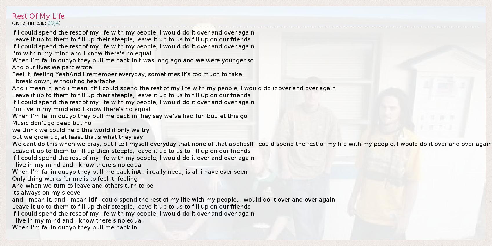 А как ты думаешь, о чем песня "Rest Of My Life" ?