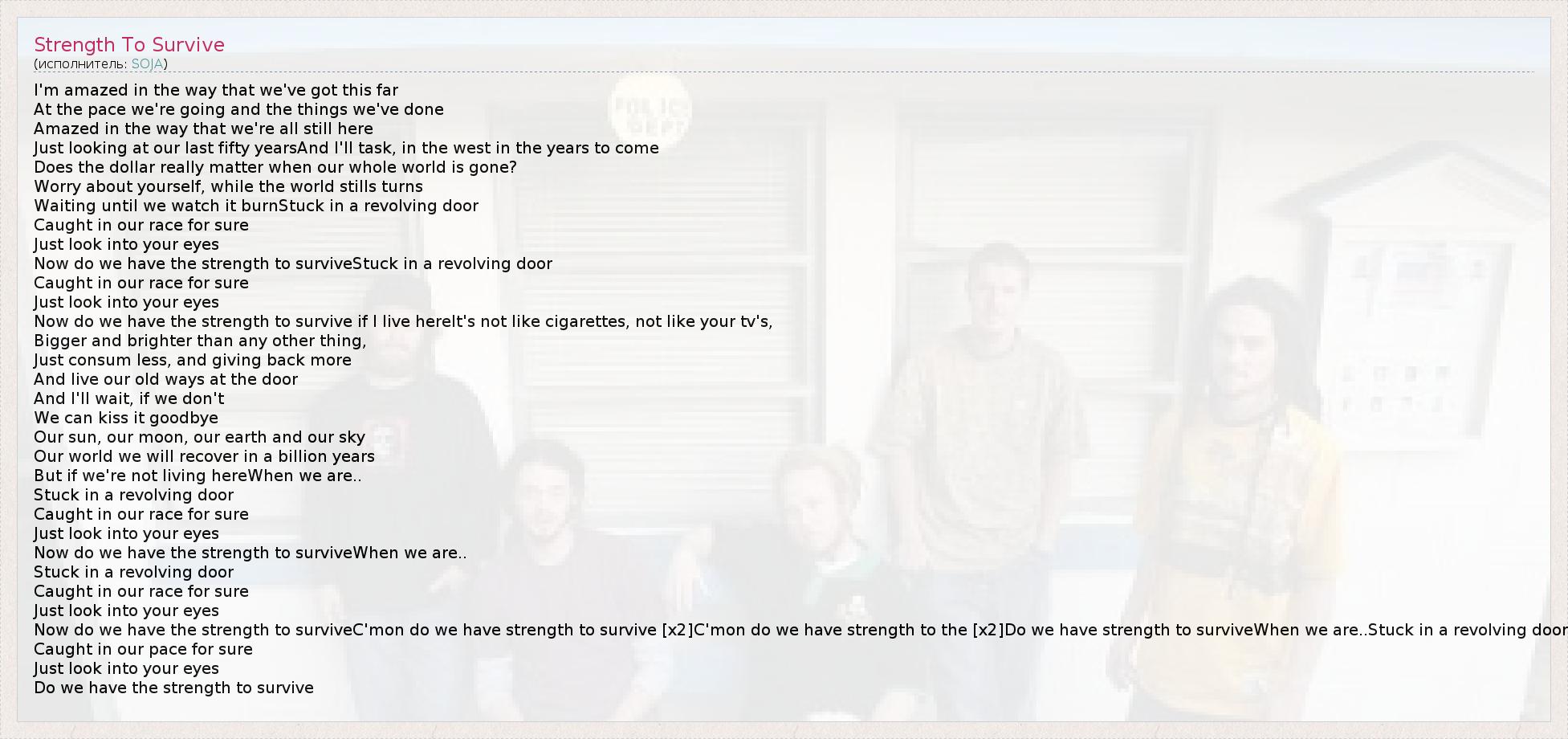 ГлавнаяИсполнителиSOJAStrength To Survive