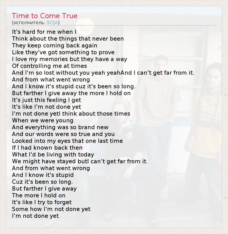 А как ты думаешь, о чем песня "Time to Come True" ?
