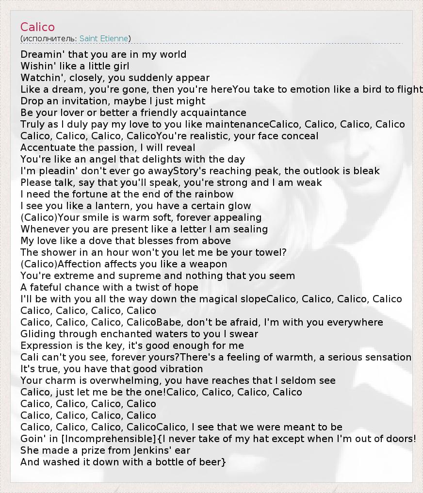 Calico, Calico, Calico, CalicoCalico, I see that we were meant to be