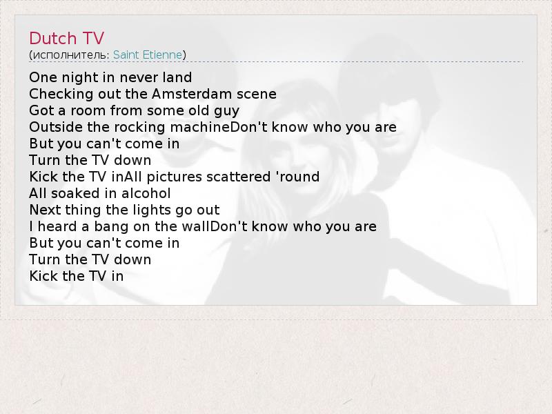 А как ты думаешь, о чем песня "Dutch TV" ?
