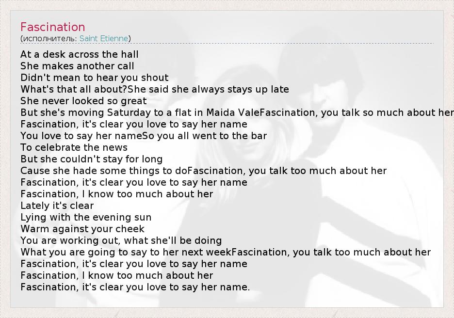 But she's moving Saturday to a flat in Maida ValeFascination, you talk so much about her
