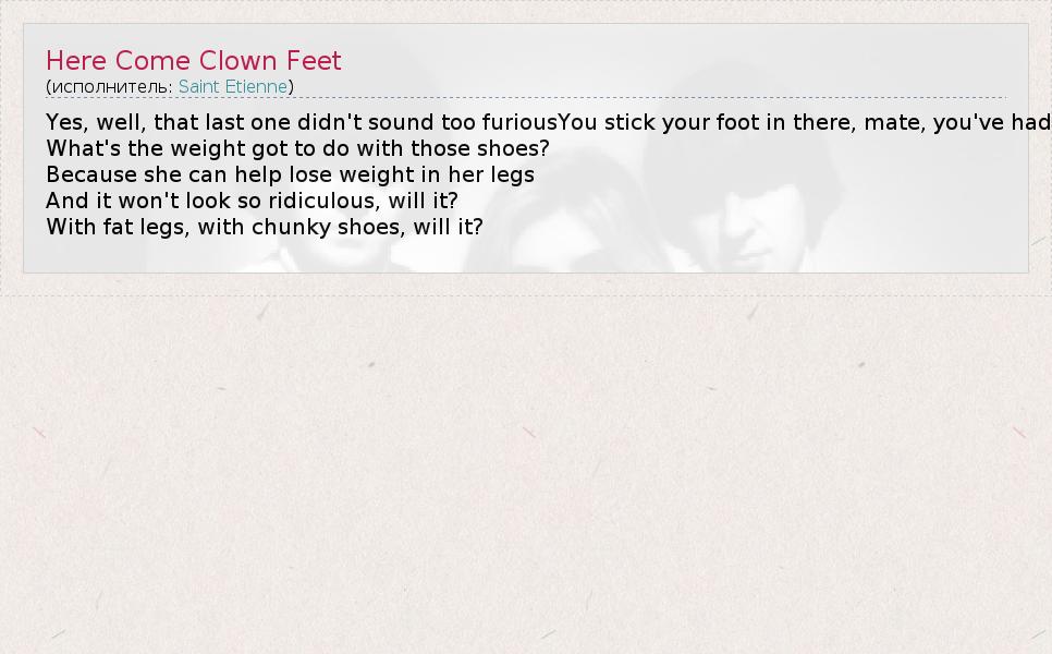 А как ты думаешь, о чем песня "Here Come Clown Feet" ?