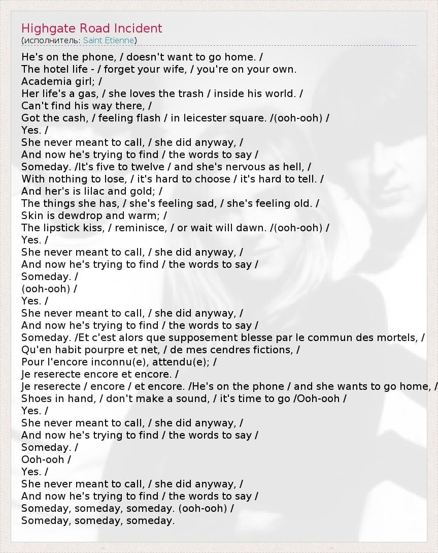 А как ты думаешь, о чем песня "Highgate Road Incident" ?