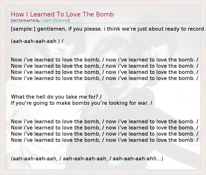 Now i've learned to love the bomb, / now i've learned to love the bomb. /